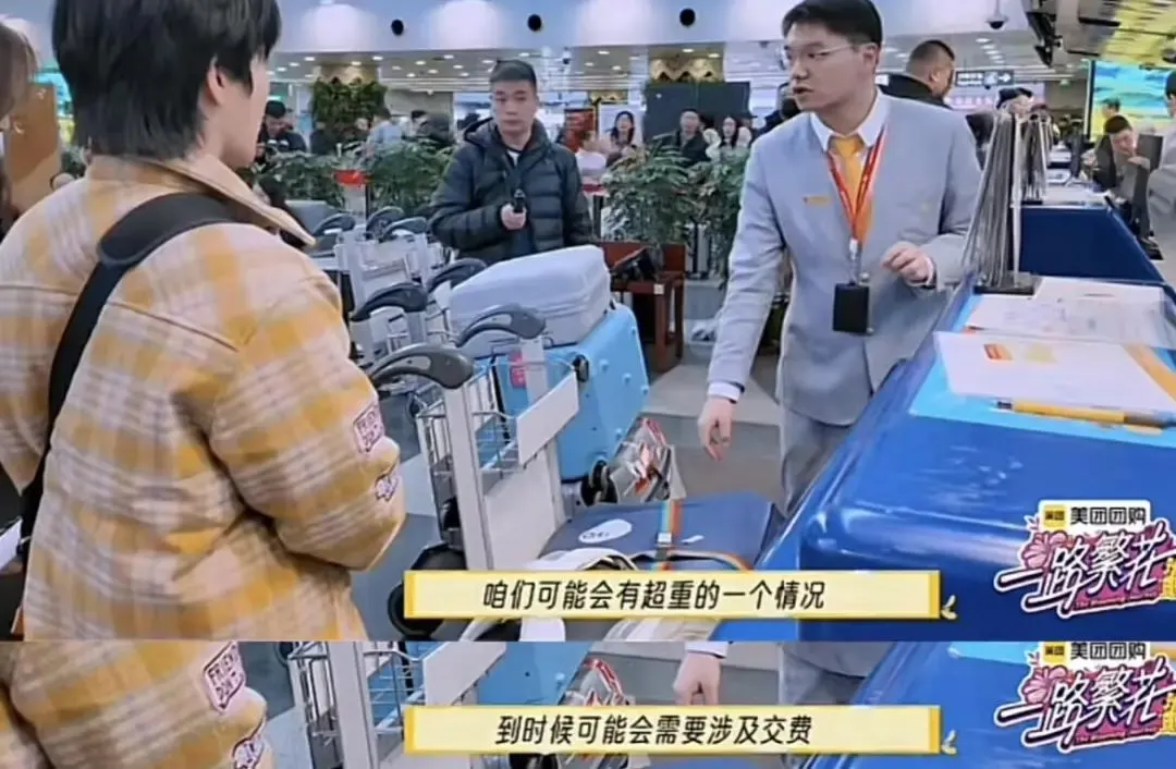 就像几乎所有旅行综艺开场那样,嘉宾们在机场候机时发现,行李超重了150公斤,需要补6900元的费用。