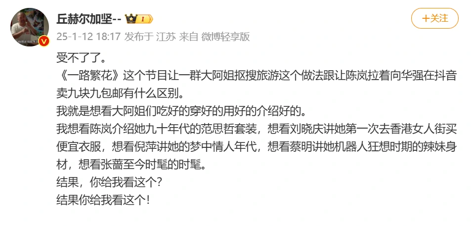 《一路繁花》节目组,别套那10年前的过时公式啦!