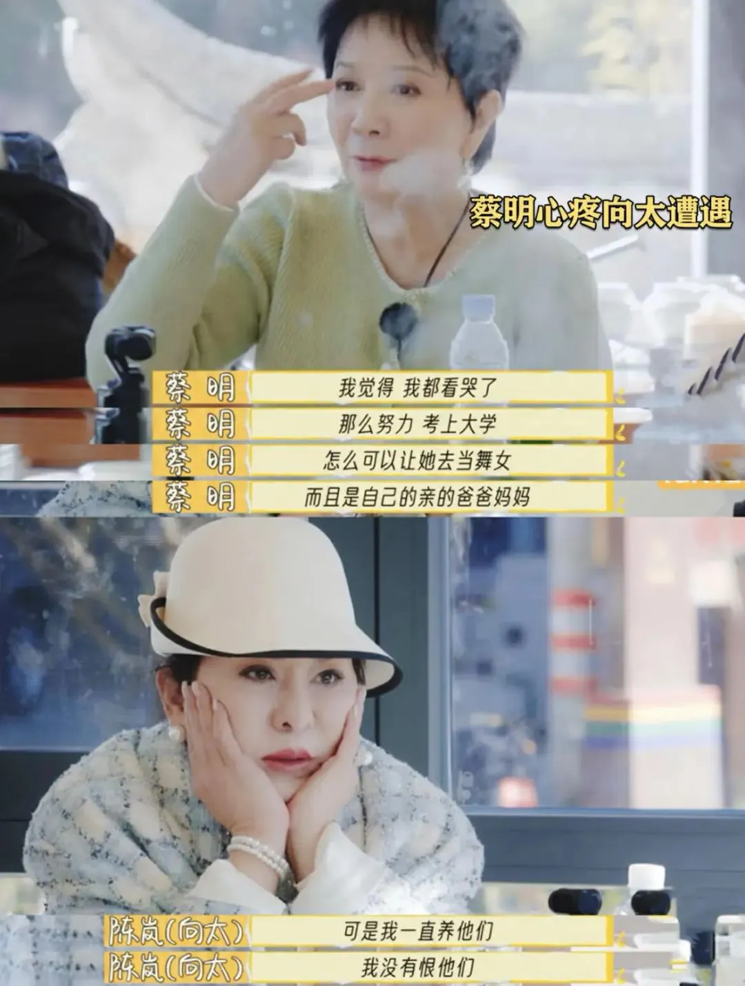 蔡明谈起自己过去在短视频平台上刷到的向太遭遇,形容自己眼泪哗哗流,她看着对面的向太,眼底却满是怜惜和共情。