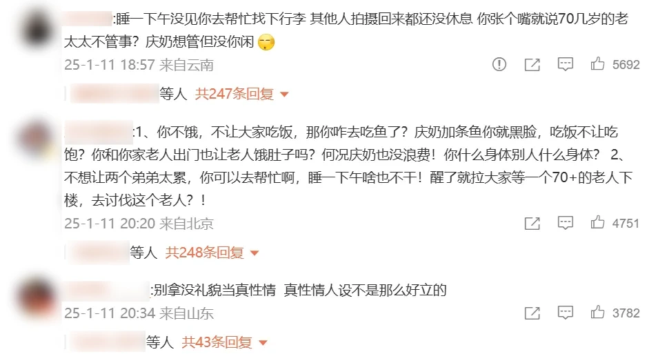 旅行磨合期中琐碎的生活习惯的摩擦,在传言中逐渐畸变成了“李小冉不让刘晓庆吃饭”的讨论,越说越离谱。