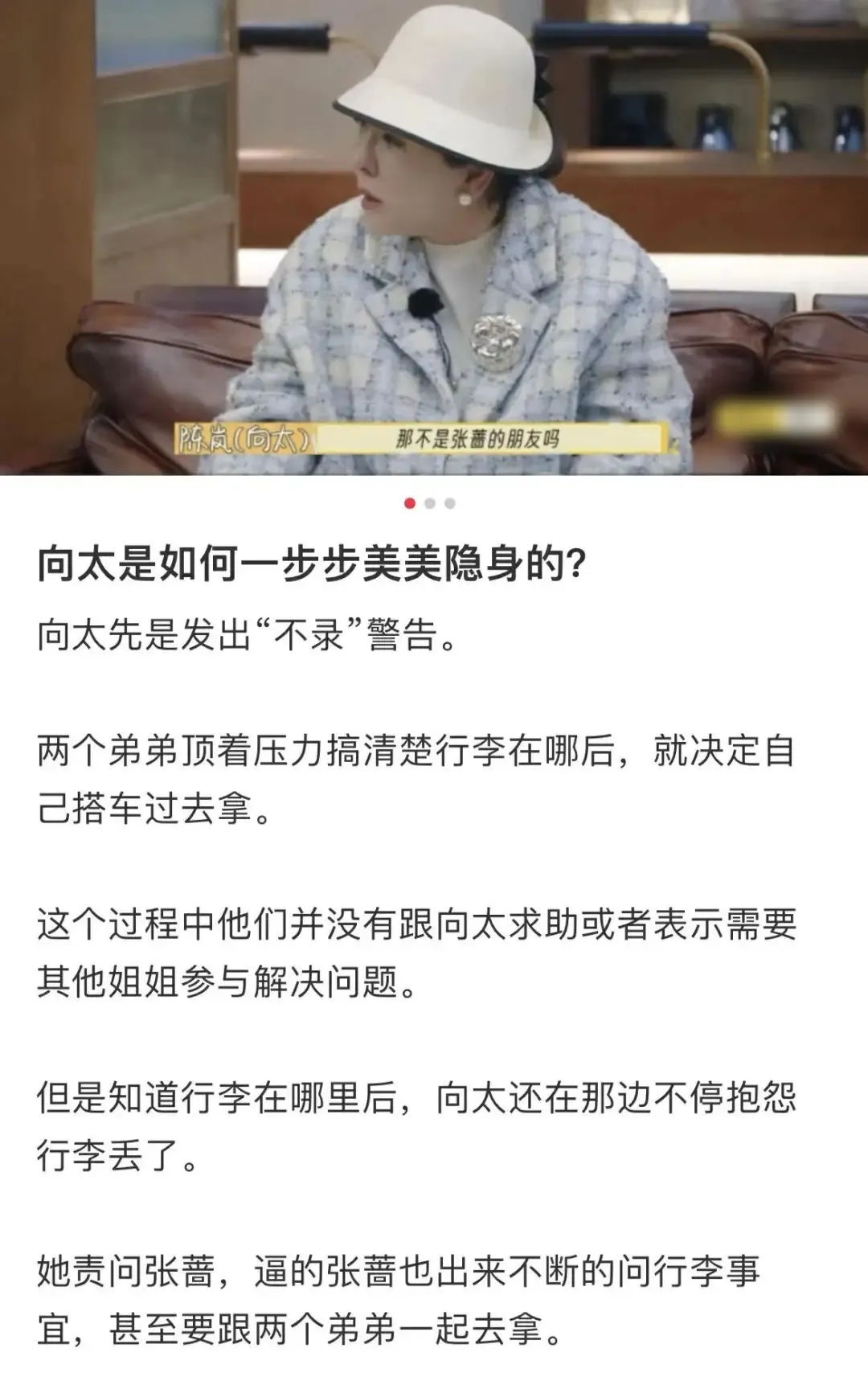 发酵一阵子之后,网友的风向再次转变,找到了“隐身”的向太——行李最多的罪魁祸首,但是最爱当好人。