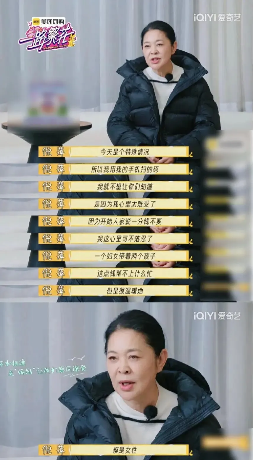 聊天中了解到摊主姐妹俩的生活不易,倪萍向节目组撒谎用了5块钱经费,实则用自己的手机给她们转了60元。